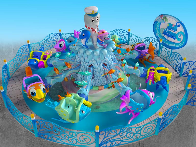 海洋總動員屬于外觀創(chuàng)新性自控飛機游樂設備,以《海洋總動員》為主題設計,整套設備的色彩搭配和諧完美,清新亮麗;中間珊瑚島造型的底座托起幾只形態(tài)可愛的小丑魚,飛魚造型的座艙,卡通可愛,非常吸引游客尤其是小朋友的眼光。