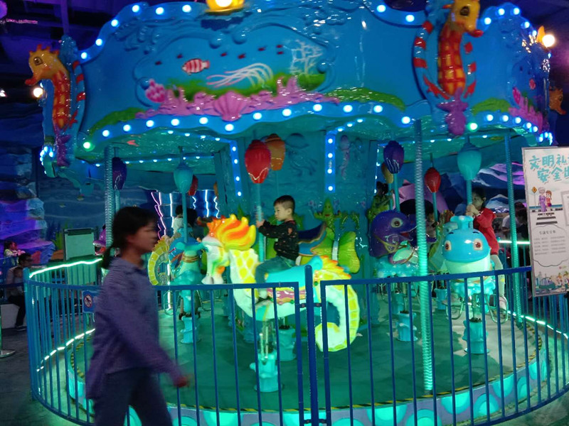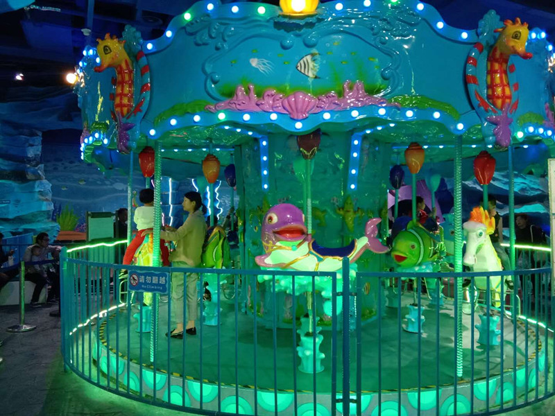 這是前天游玩的時候拍下來的一張照片,很絢麗的海洋轉馬,要玩這個旋轉木馬入門票30元,玩這個海洋轉馬是另外加10元,等于說一共是40元,還是有很多小朋友玩,有的小孩子小的家長還在旁邊陪著以防摔倒,有的旋轉木馬是沒有燈的,這款海洋小轉馬還有絢麗的夜燈,看起來更加的華麗了。